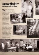 Winterzeit – Hausschlachtungszeit, so war es früher, denn hier passte alles zusammen: Die Erntearbeit auf den Höfen war getan, das Vieh war fett und die Tem- peraturen kalt, so dass das Fleisch sich gut hielt und man auch nicht mehr